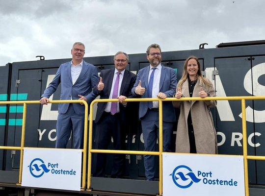 Charlotte Verkeyn, Voorzitter Haven Oostende: "We zijn trots op deze mijlpaal. Dankzij doorgedreven samenwerking en investeringen kunnen we opnieuw treinen ontvangen in onze haven. Dit opent perspectieven voor groei, tewerkstelling en een duurzamere toekomst."
