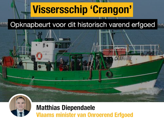Matthias Diependaele, Vlaams minister van Onroerend Erfgoed, kent een beheerspremie van 503.319,18 euro toe voor de restauratie van de garnalenvissersboot ‘Crangon’. “Dankzij deze beheerspremie kunnen toeristen dit bijzonder stukje varend erfgoed volop blijven beleven. Zo maken ze kennis met een voor onze Vlaamse kust zo typische vorm van visvangst. Een mooie wisselwerking tussen erfgoed en toerisme.”, zegt minister Diependaele.