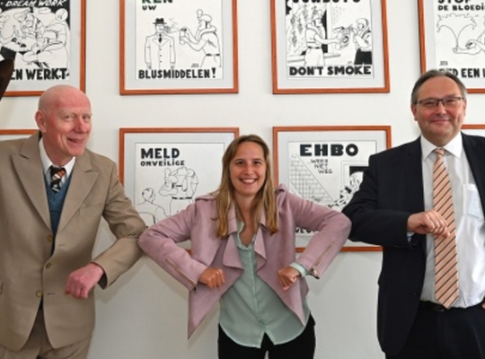 Havenvoorzitter Charlotte Verkeyn: “De originele cartoons krijgen een prominente plaats in de hoofdingang van het havengebouw omdat Veiligheid, Gezondheid en Milieu onze belangrijkste prioriteitsstelling is. We werken hard om een bedrijfscultuur te ontwikkelen waarbij de veiligheid en gezondheid van de mensen die in ons havengebied werken altijd op de eerste plaats komt. Via allerhande acties willen we de aandacht voor Veiligheid, Gezondheid en Milieu inbedden in het DNA van Haven Oostende."